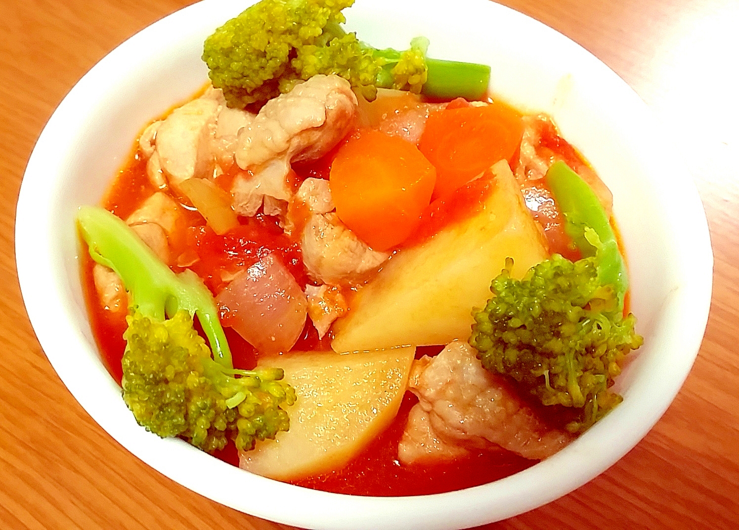 鶏もも肉と人参とジャガイモの 煮込み トマト味 そよ風になって